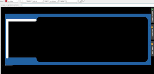 14. Switch to EAGLE "Layer 16-Milling" and use the line tool to draw the outline for the FabTinyISP using a line width of 0.8mm as will be using a larger end mill to cut through the PCB material. Use the "Milter" EAGLE Editor command to create the curve corners.