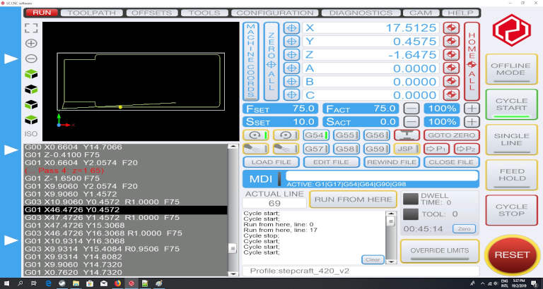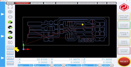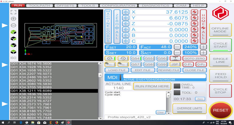 22. I have two gcode files, one for traces and one for outline. For the outline, it is running multiple passess and increases in the depth.