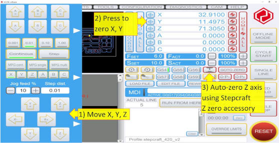 Z Up : 2.54mm (height for mill bit to raise and move from location to location)