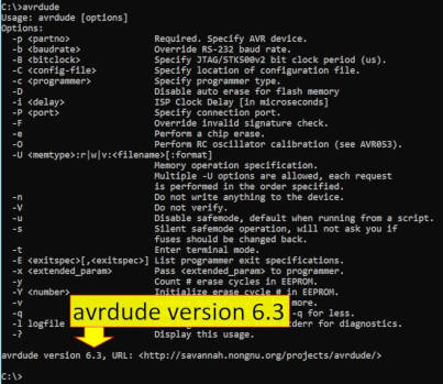 (PS : at command prompt, type :avrdude -h" for more info)