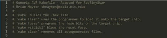 10. Go to the folder that contain the firmware (C:\FabTinyISP Firmware\) and open the "makefile" to have a look. At the top, there is a brief introduction to the various make commands. In simple explanation, a makefile is used to simplified running of various seperate tasks(or instructions), it is like one single file that contains all the common tasks (or instructions) that you can run.