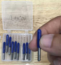 I had cut my finger against the sharp tip of the 0.1mm v-bit (10 degree) twice. Once while changing the v-bit on the Stepcraft machine, the other time was while removing the v-bit from tit's box, by placing my finger on the tip/top of the plastic cover and taking it (the v-bit) out of the box.