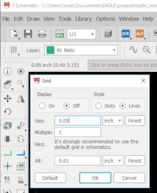 9. Next I turned on the grid display a set the size of grid size to a smaller 0.05 for easy placement of components.