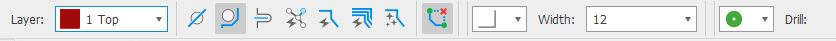 Set layer to "Layer 1 - Top", set the "wire bend" style to be "90 degree" bend and width to be "12" mil.