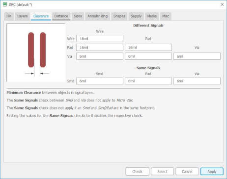 I saved the setting to my own Design Rules file call "Lucas.dru", so that I can load this file for DRC in the future.