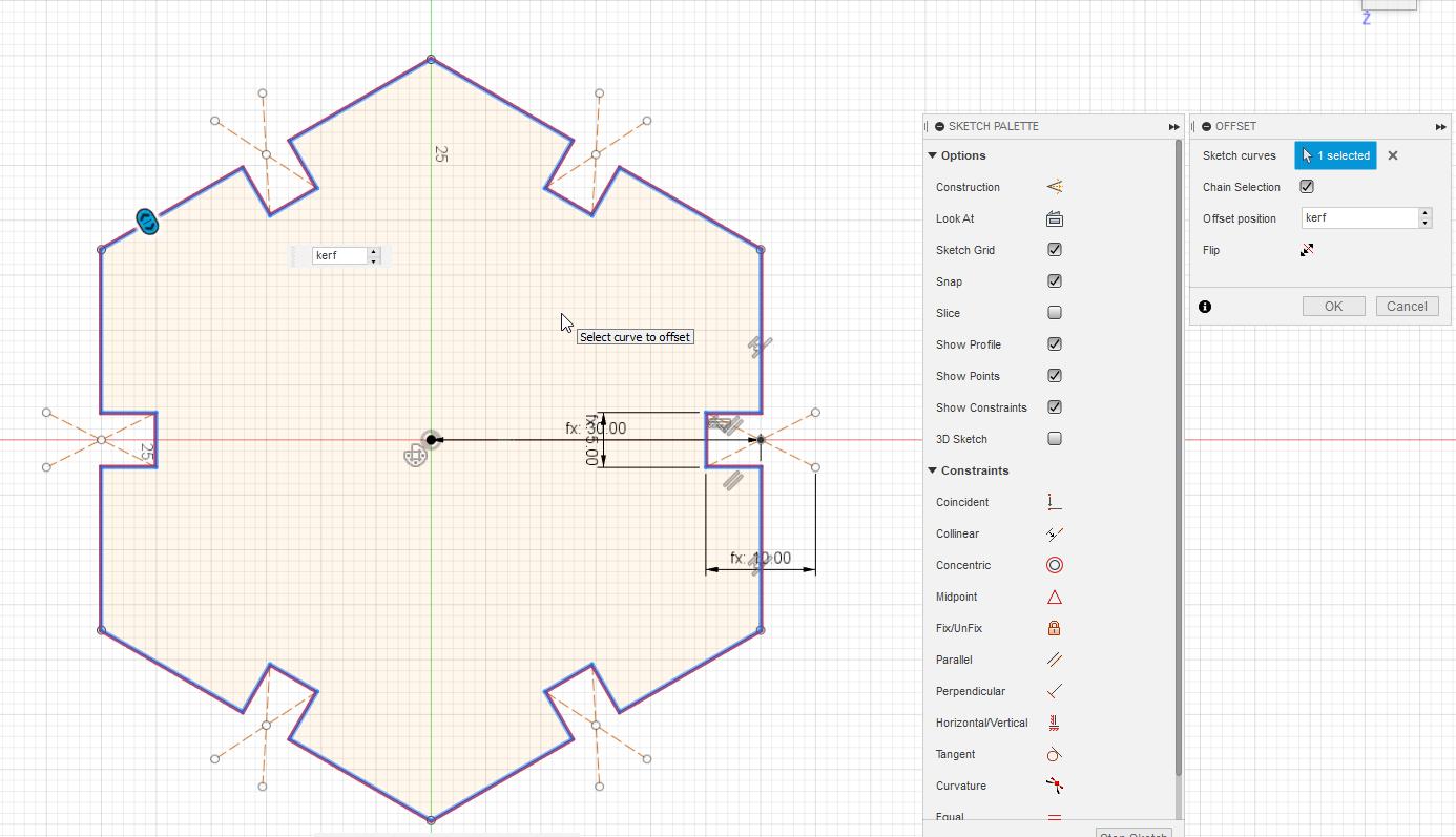 Sadly I didn’t succeed in using the offset tool to set the Kerf.