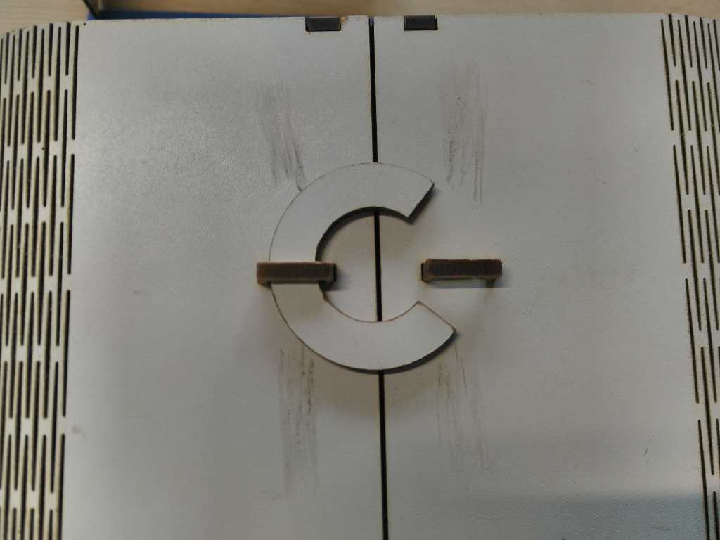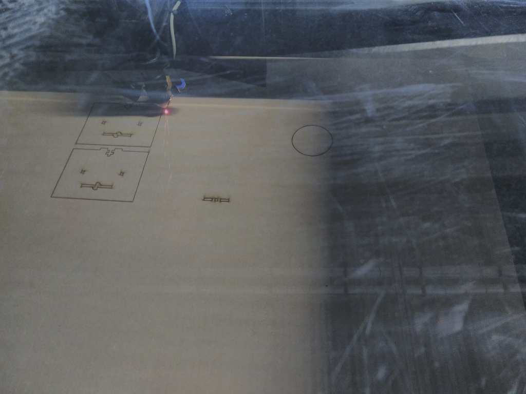 I place the cardboard on the bed of the laser and adjust the focal length to the top of the material. AgriLab’s Laser has an automatic Z adjustment, you place a predefined metal part, the Z axis go down and a sensor reacts at a precise distance from the metal.