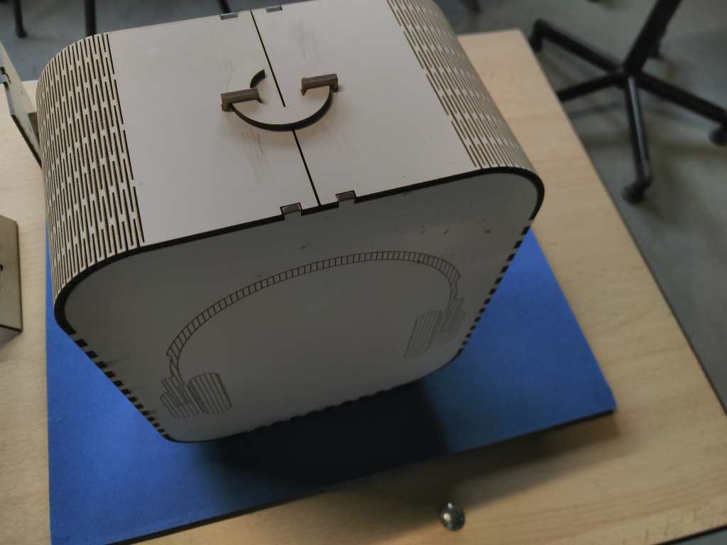 I’ve also played a lot with bending texture and interslot patterns. This is a box for headphones, combining bending patterns and some smart and good-looking locking system. It uses a little amount of glue .