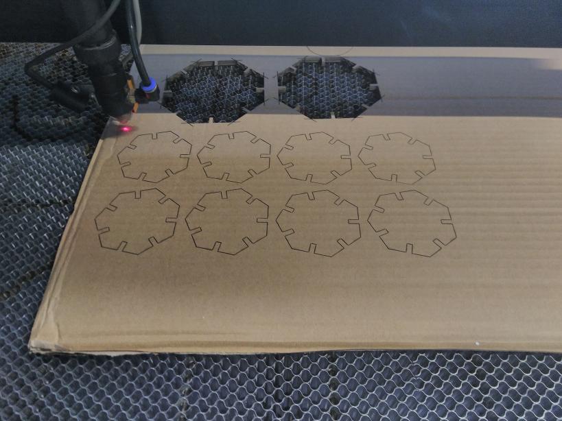 I cut some pattern to find the best power and speed parameter for that cardboard and that thickness of material.
