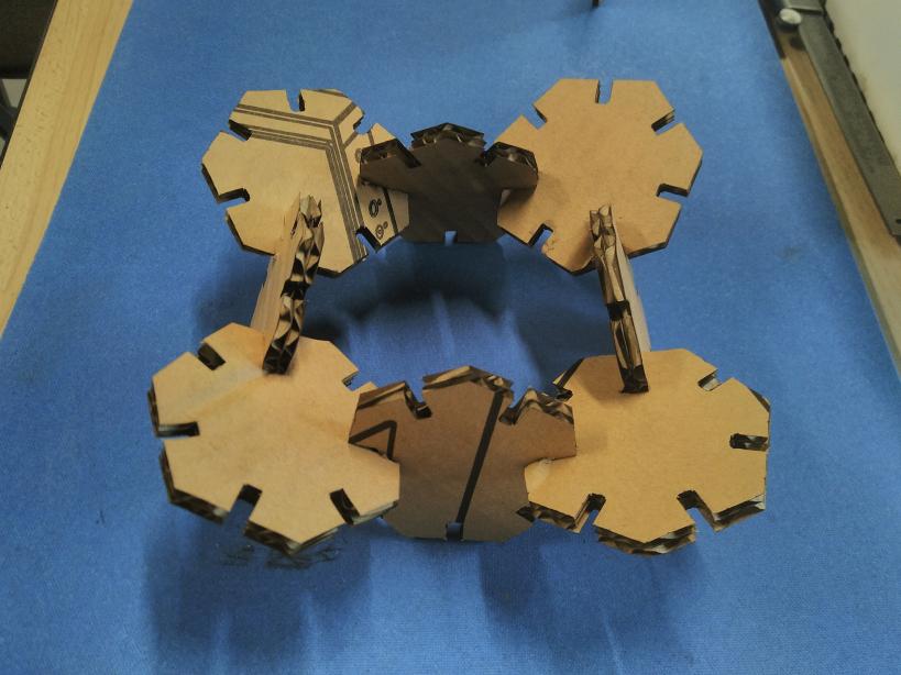 The assignment for this week was to design and built a fully parametric shape with slots to be assembled in different ways. The material is cardboard.