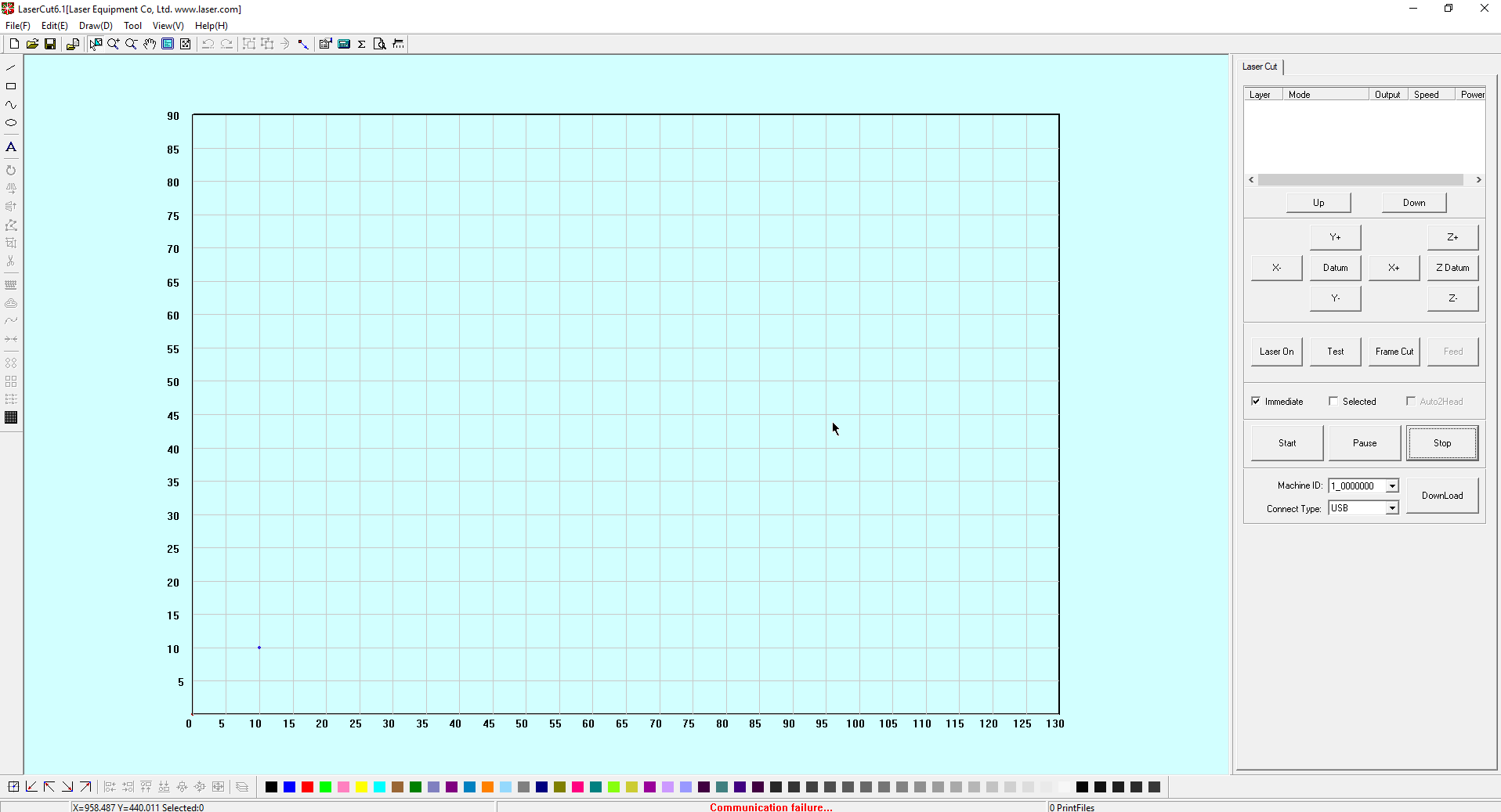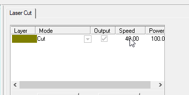 In this software you select the shape and give them a color that will be related to a layer on the right part of the screen. Each element of the same layer will have the same parameters : mode , speed and power.