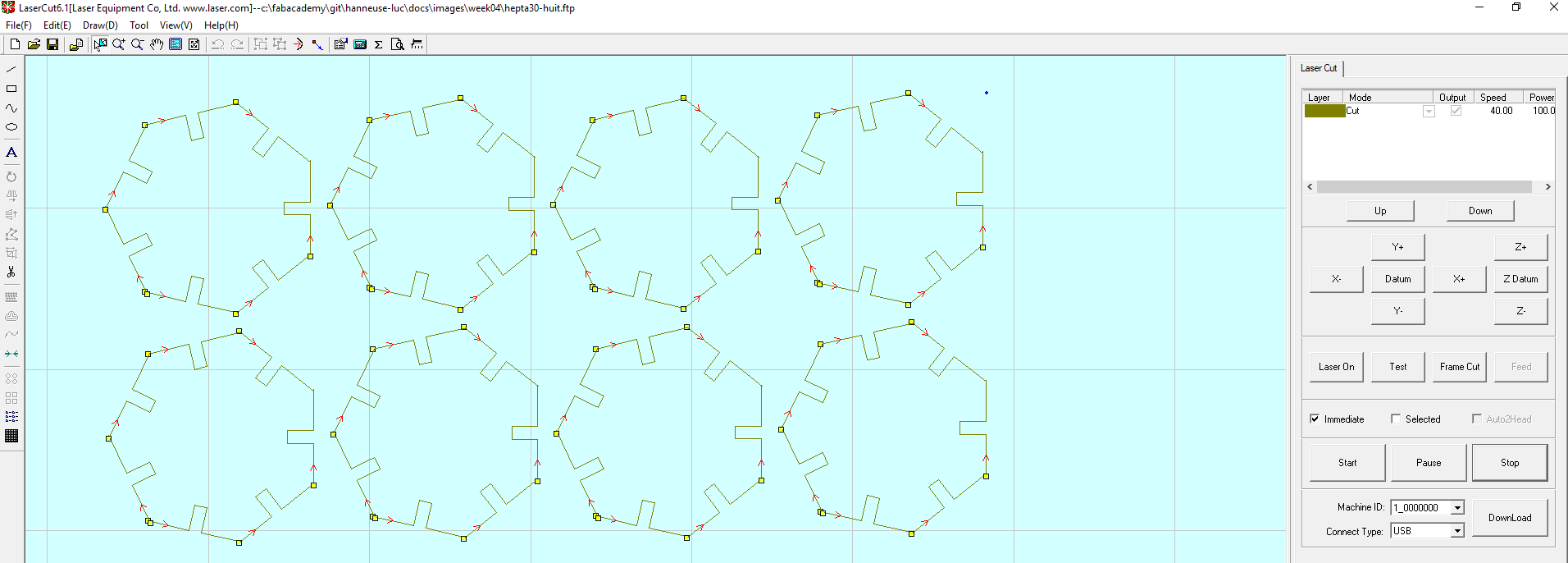 The laser file to be open with LaserCut software : hepta30-huit.FTP