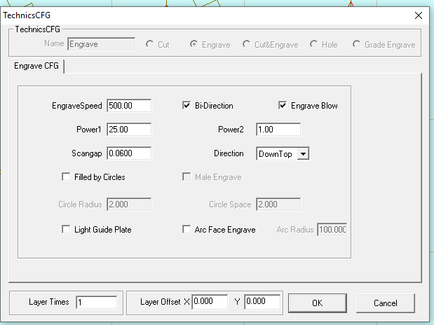 The layer will be processed in the displayed order. It is important to cut the external shape at last, the object will be free to move and fall, so generally it is placed on the last layer.