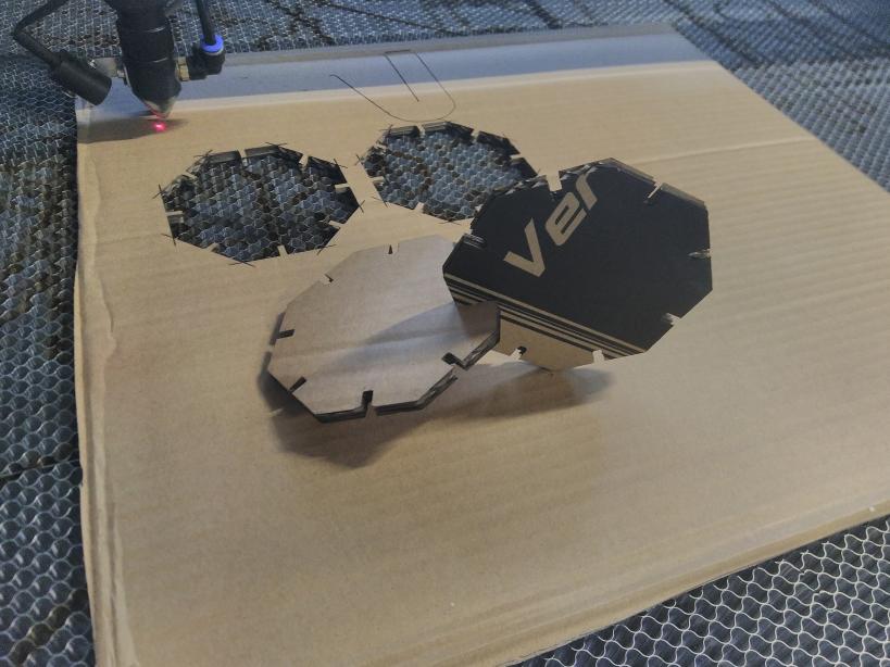 And cut some 8-edges shape with a 4mm slot and a 0.1mm kerf . It fit perfectly.
