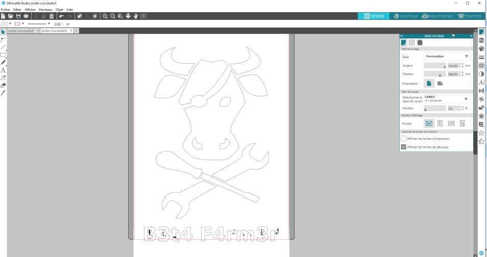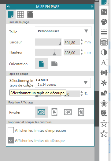 You have to select the correct Vinyl Cutter, here , cameo 3 and select the right media size (width and height). The media was 304 mm. Then you also select the orientation but it’s more a visual thing.