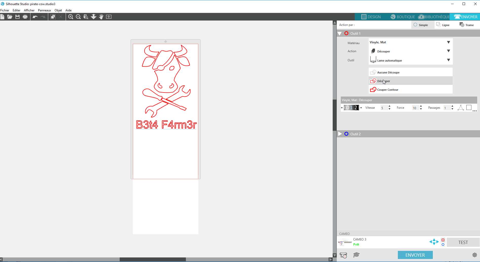 Then I switch to the cam part of the software, called in French envoyer (send in English)