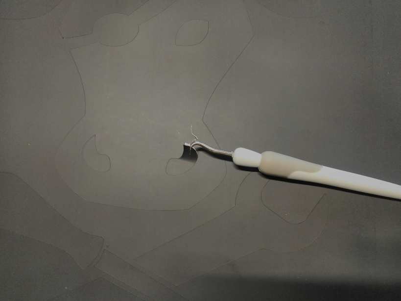 Then you see the blade moving and cutting the vinyl. The result of the cut media