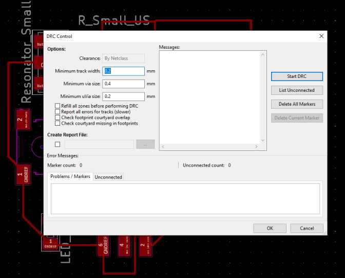 I print on paper the layout to check it. Clearly the resonator was not the good model in the library. The resonator was not by default in the libraries. I have to find it in other libraries and install them…