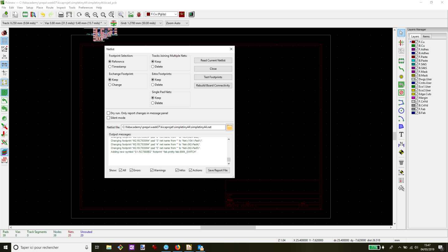 I find my first error. I didn’t connect correctly the reset pin on Eeschema . So I go back and modify the schematic.