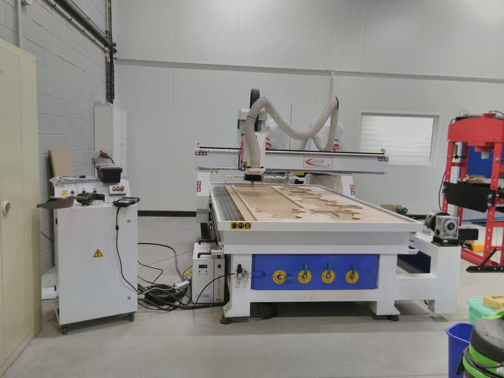 It’s a Big CNC, Working area : 2,5m * 1,5m plus a 2,0m rotational axis.