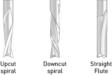 Some projects may benefit from other types of flute geometry. Contour cutting MDF or plywood sheets would benefit from down-cut spirals as the tool would push the material against the CNC machine table as it cuts rather than lift it.