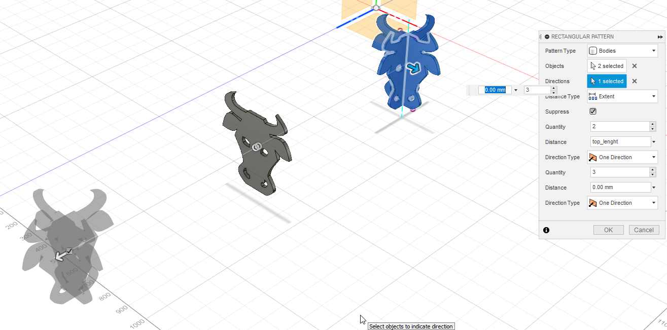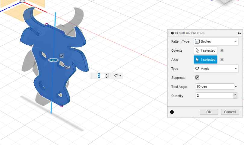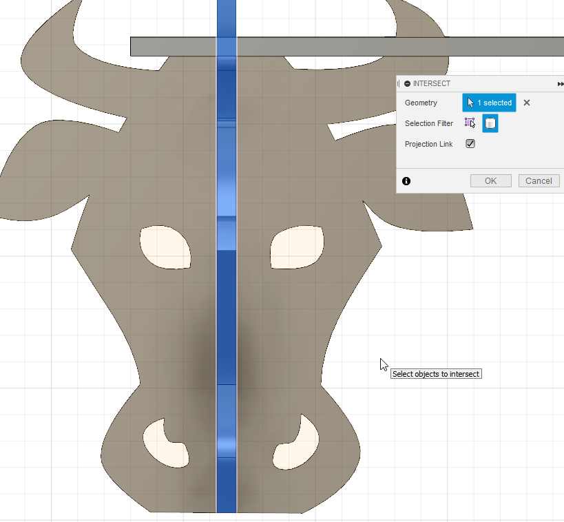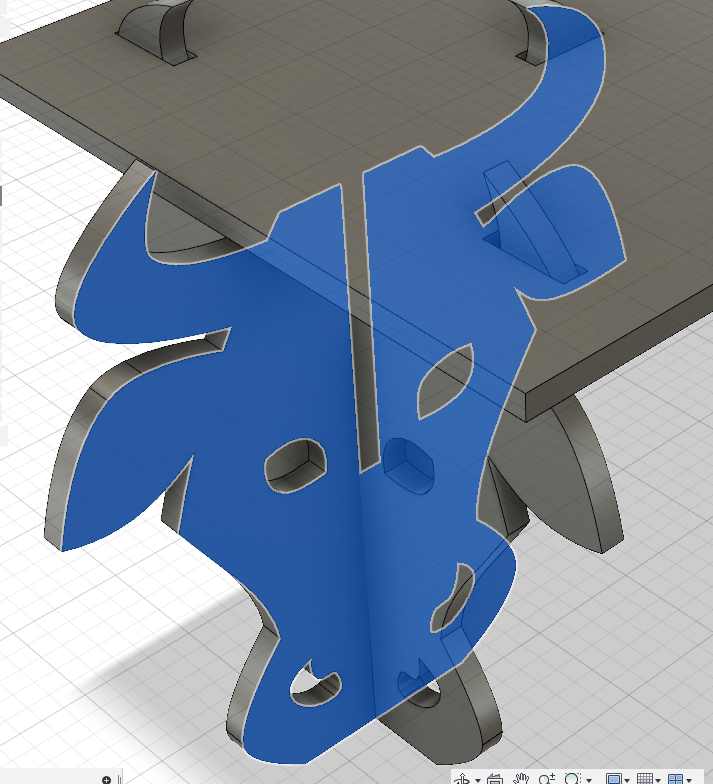 And “extrude a cut” of those rectangles. It will be the first join to connect the top shelf with the foot made of the cow head.
