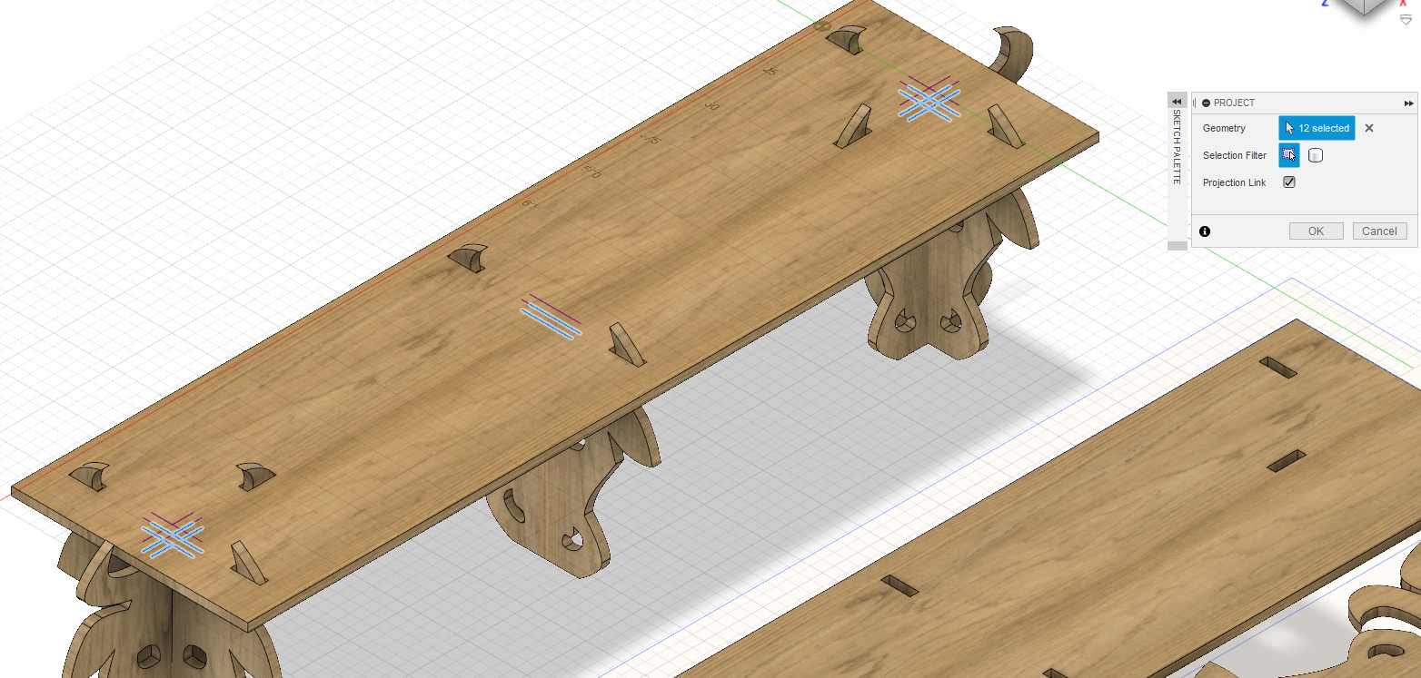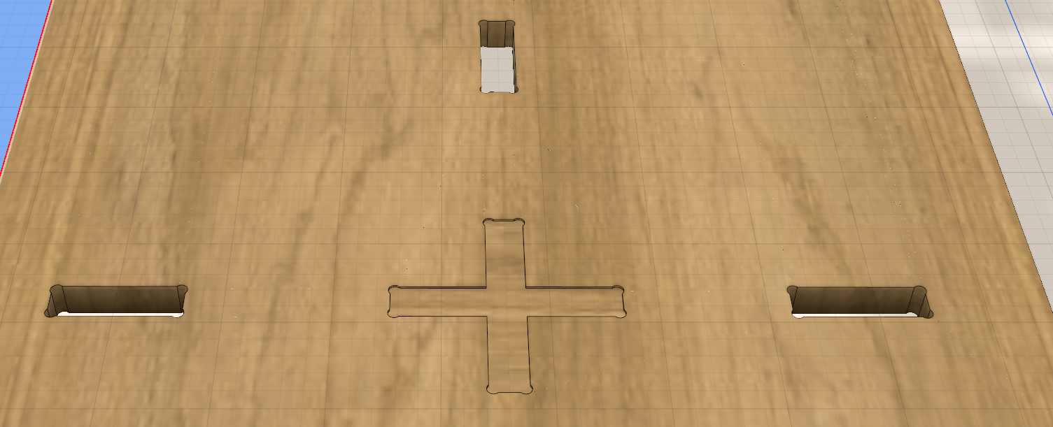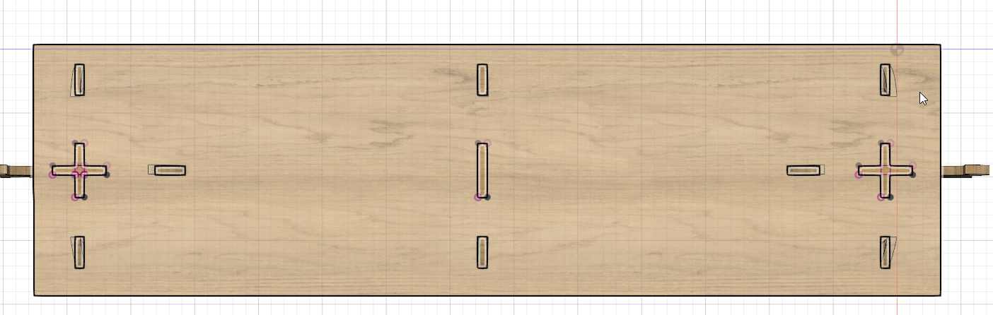 Finally I decide to create some pocket on the top side of the shelf, it’s just in case I need to drill some screws, they’ll be perfectly align with the bottoms parts. I create a projection and cut those volumes.