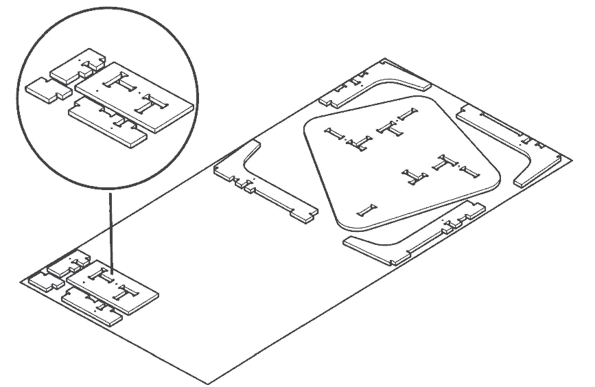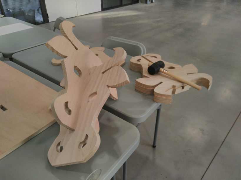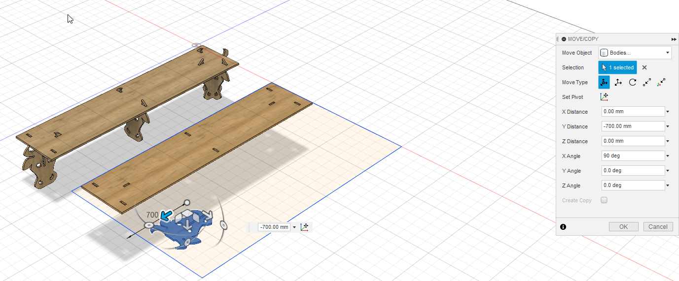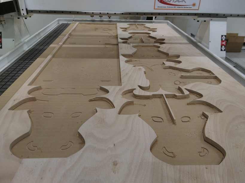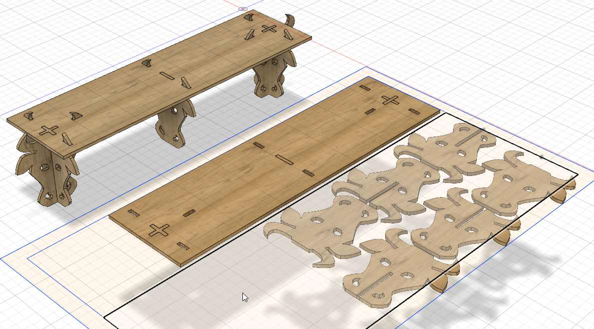 I prepare the file for the machining. I make a copy of all the elements and lay them flat on a flat pannel (the dimension of my wood sheet).