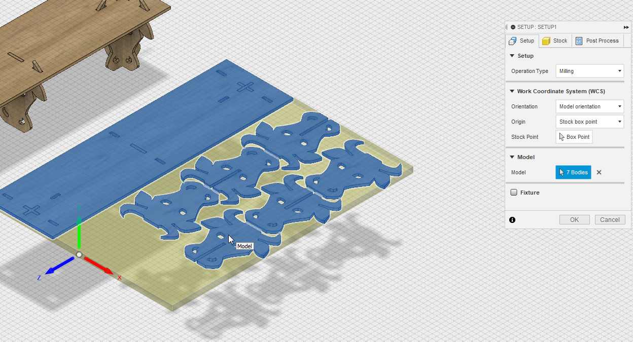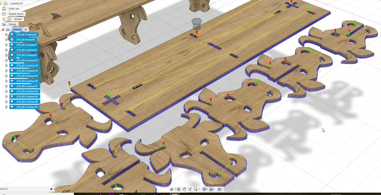I design this furniture with many things in mind. It looks simple but it has been optimised for CNC milling. It does not need many strategies and can be milled quickly with a few passes .