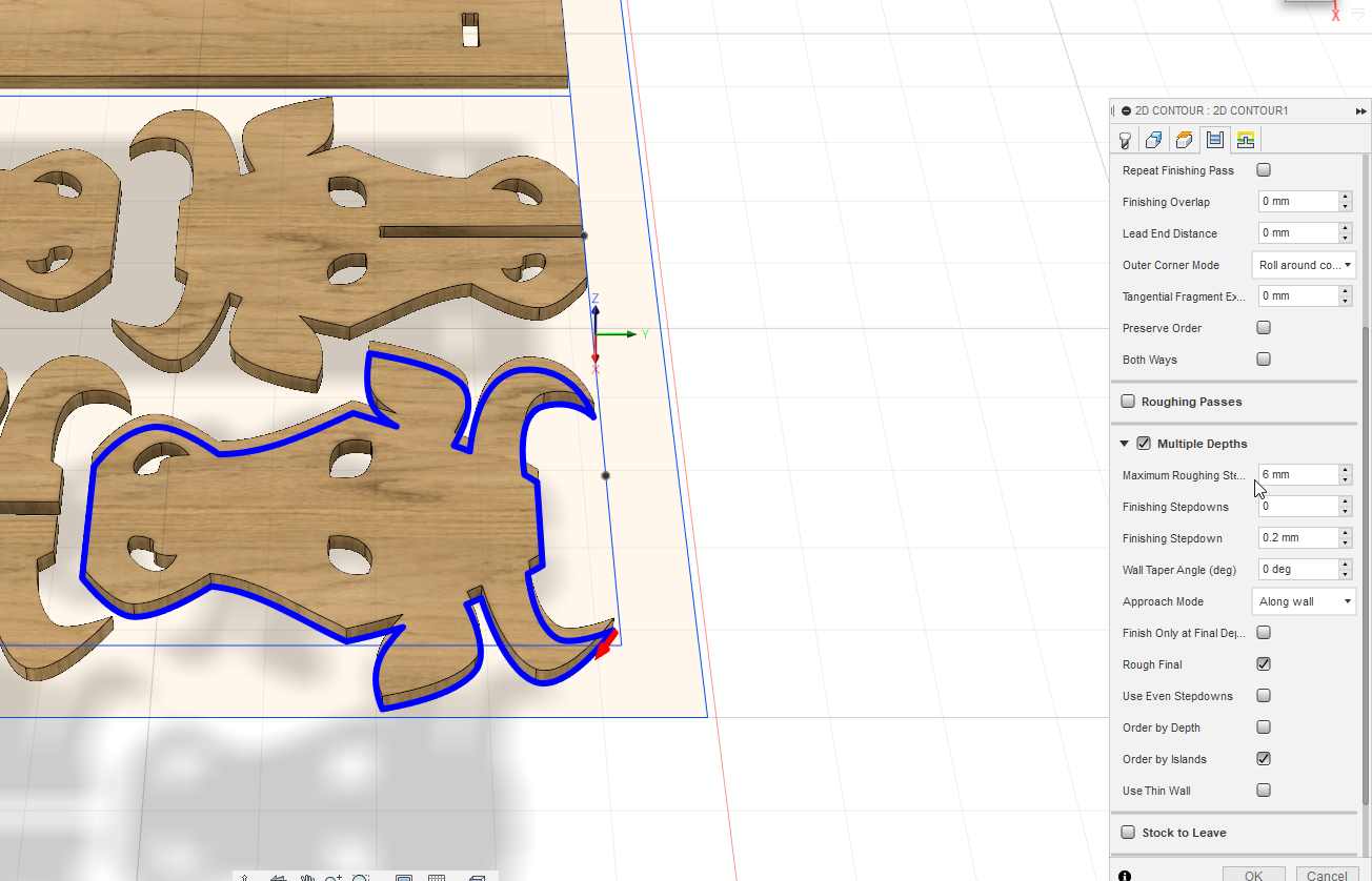 As my material is 18.4 mm I select the multiple depths and a roughting step of 6 mm