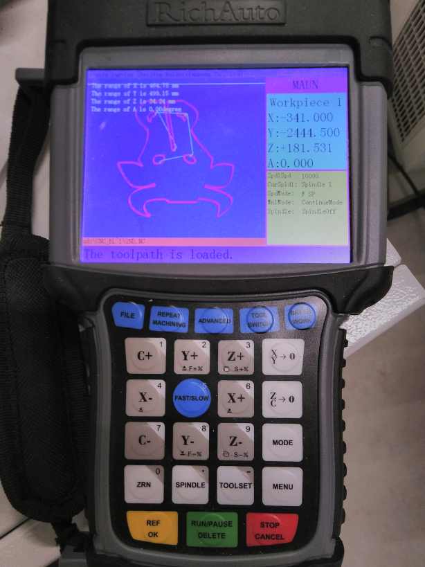 Then I have a gcode file, I transfer it to a usb memory that I plug in the remote control of the CNC.
