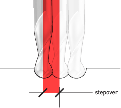 Stepover is the distance the tool moves over between subsequent passes.