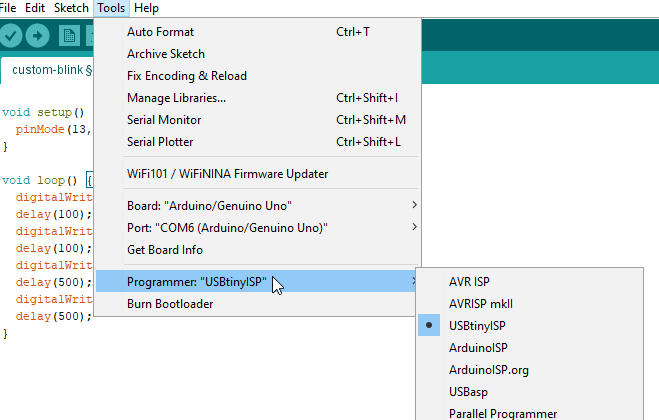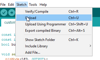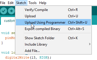 I upload throught the ISP interface. Shortcut ctrl-shift-u