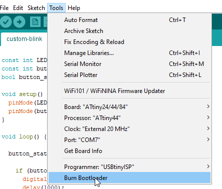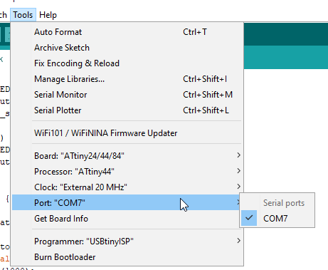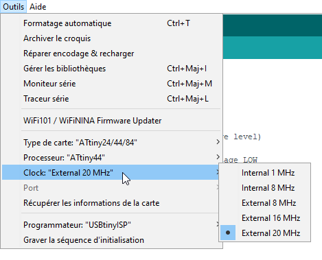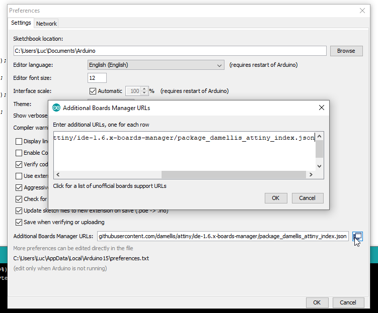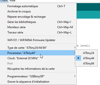 Then I add the Attiny board adress in the Board Manager : https://raw.githubusercontent.com/damellis/attiny/ide-1.6.x-boards-manager/package_damellis_attiny_index.json