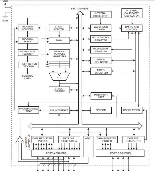 The following diragram gives an overview of all the infrastructure of the micro controller.