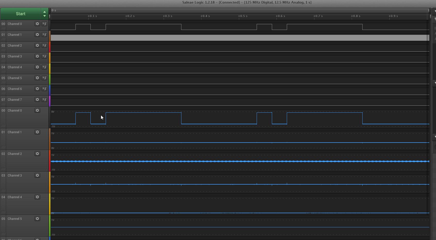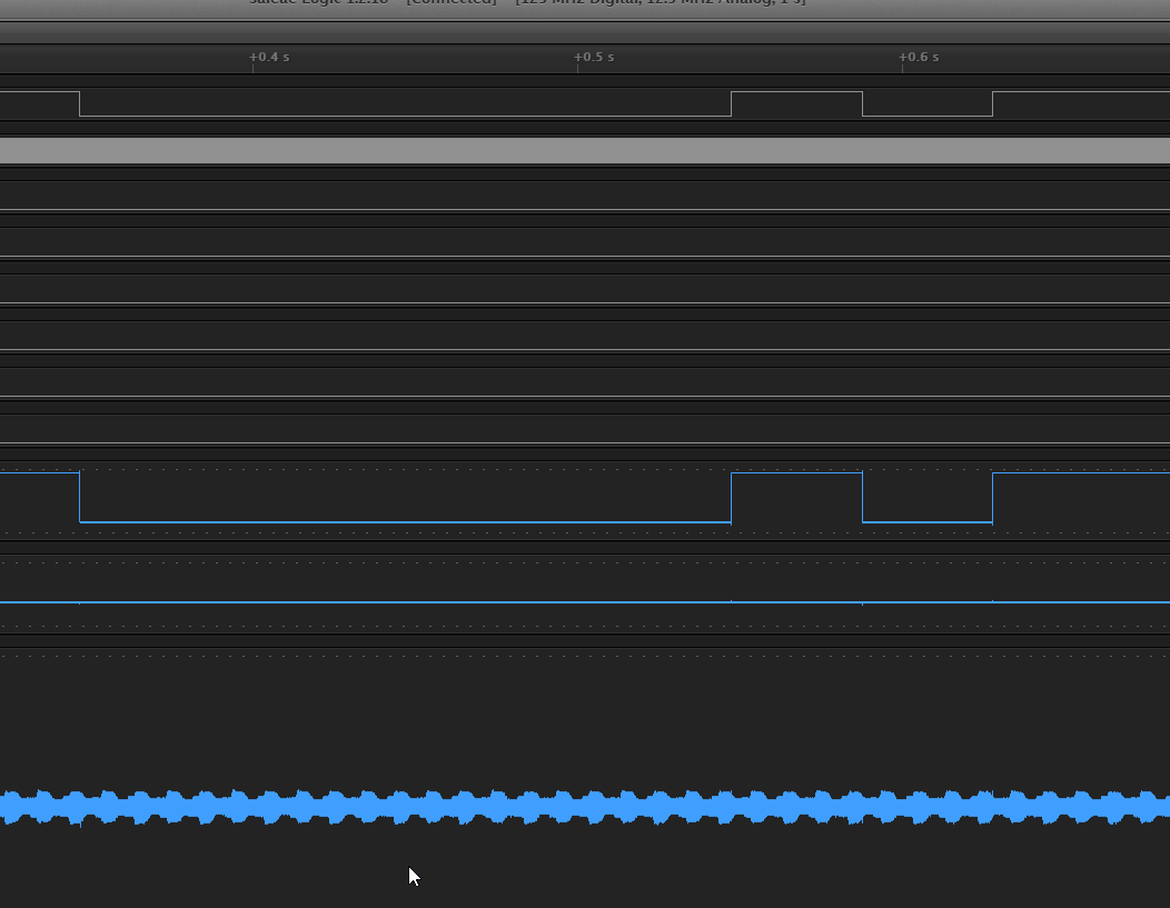 I switch to the logic analyser that have some really tiny probe. It’s a Saleae 8 channel Pro. https://www.saleae.com/