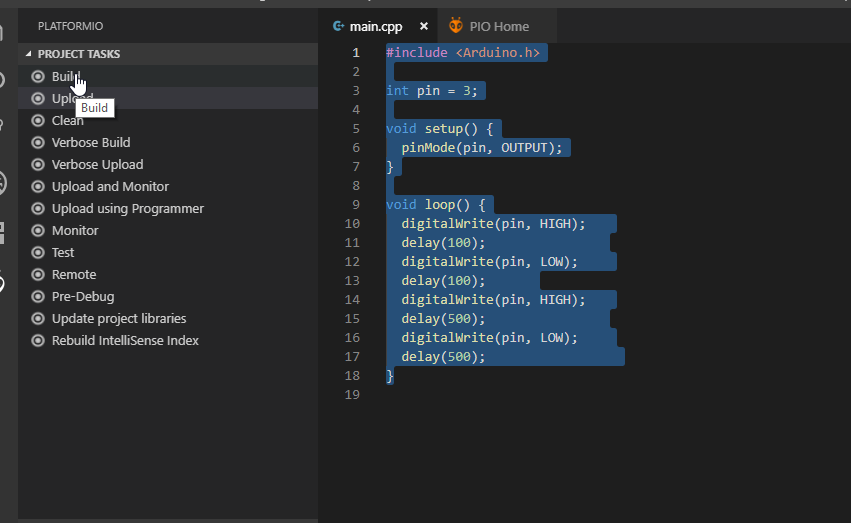 Here I put another blinking code and I have to change the pin number. Here for the led it’s 3.