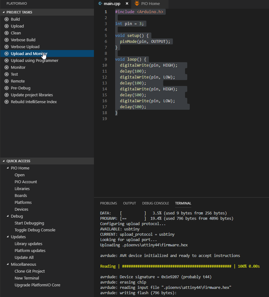 I upload the bootloader and uplaod the following code by ftdi to test the system.