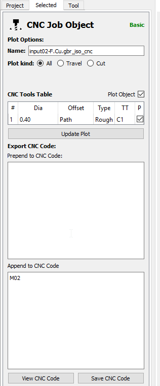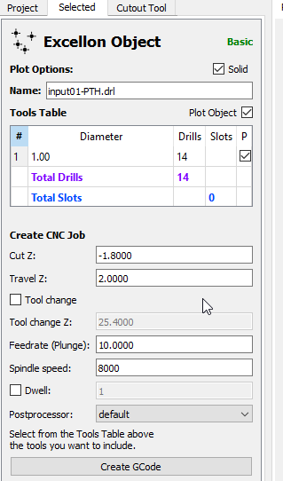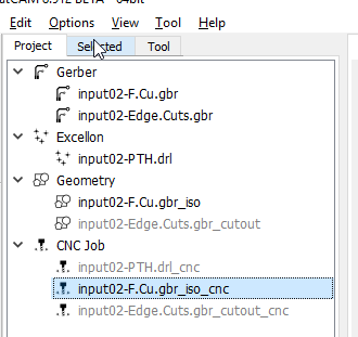 But their is one last step… So again go back to the project slide, select the new file under the CNC Job and click on Selected