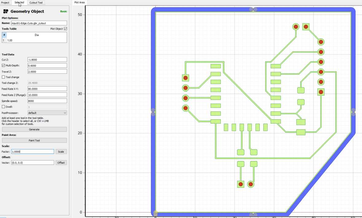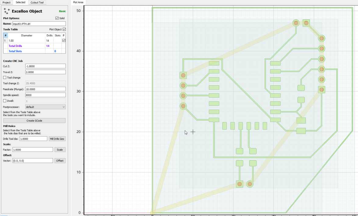 As I have some connectors, I want to drill holes. MODs does not seems to allow those function. For many reasons I want to switch FlatCAM to produce the gcode. I want also to be able to produce gerber files.