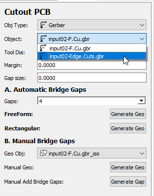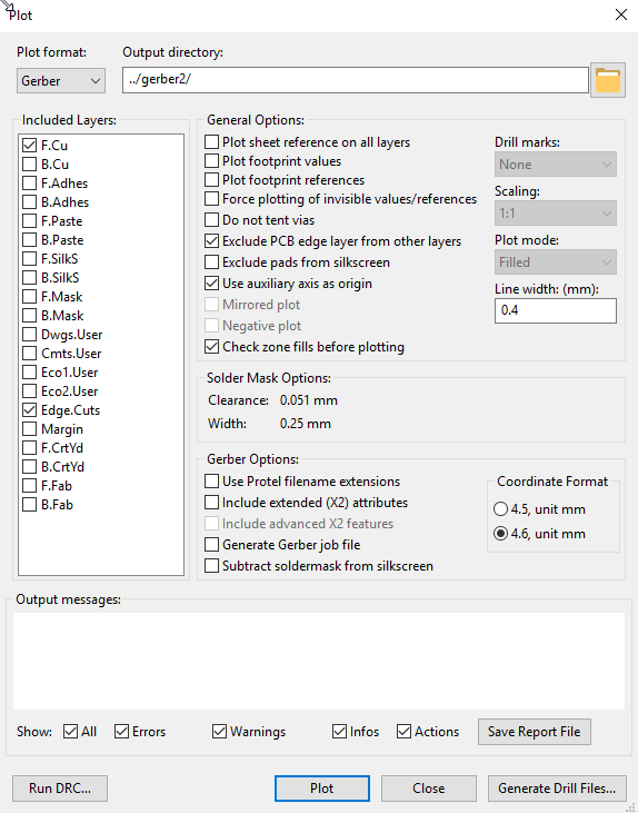 I select the 2 layers : F.Cu abd Edge.Cus