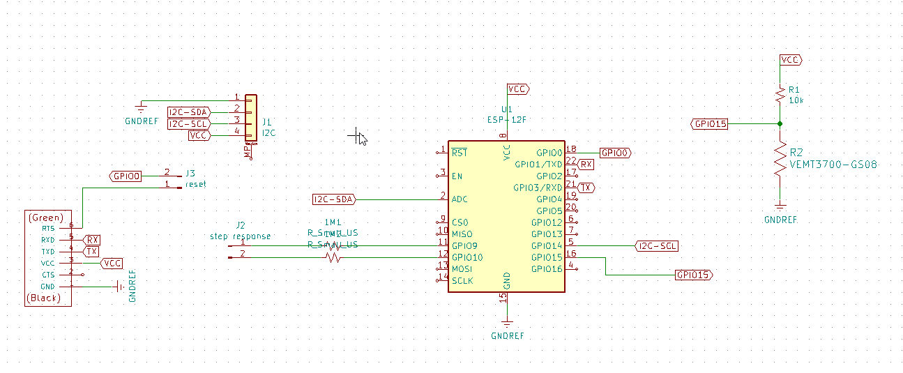 But times was leaking and I did not finish this board. I lost a lot of times finding the footprints : - in KiCAD, I did not find the VEMT3700. I look a lot on the merchant MOUSER, then with SnapEDA - I switch then on Eagle, but lost a lot of time trying to find ESP12F…