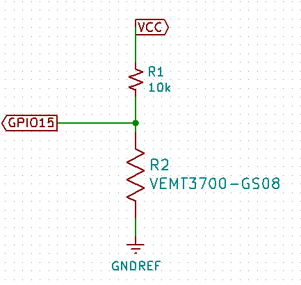 For the light sensor I get a VEMT3700 from VISHAY from Adel Kheniche our local instructor , it’s a PhotoTransistor : https://www.vishay.com/docs/81478/vemt3700.pdf