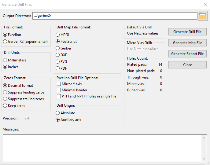 I select Excellon in the file format and click on Generate Drill File then click on Generate Map File then click on Generate Report File.