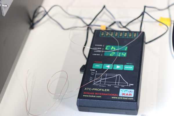 I place some temperature sensors on the board and attach them with Kepton tape. That way you measure the temperature of your board and not only the temperature of the air inside the oven (2 indications : front and rear temperature) .