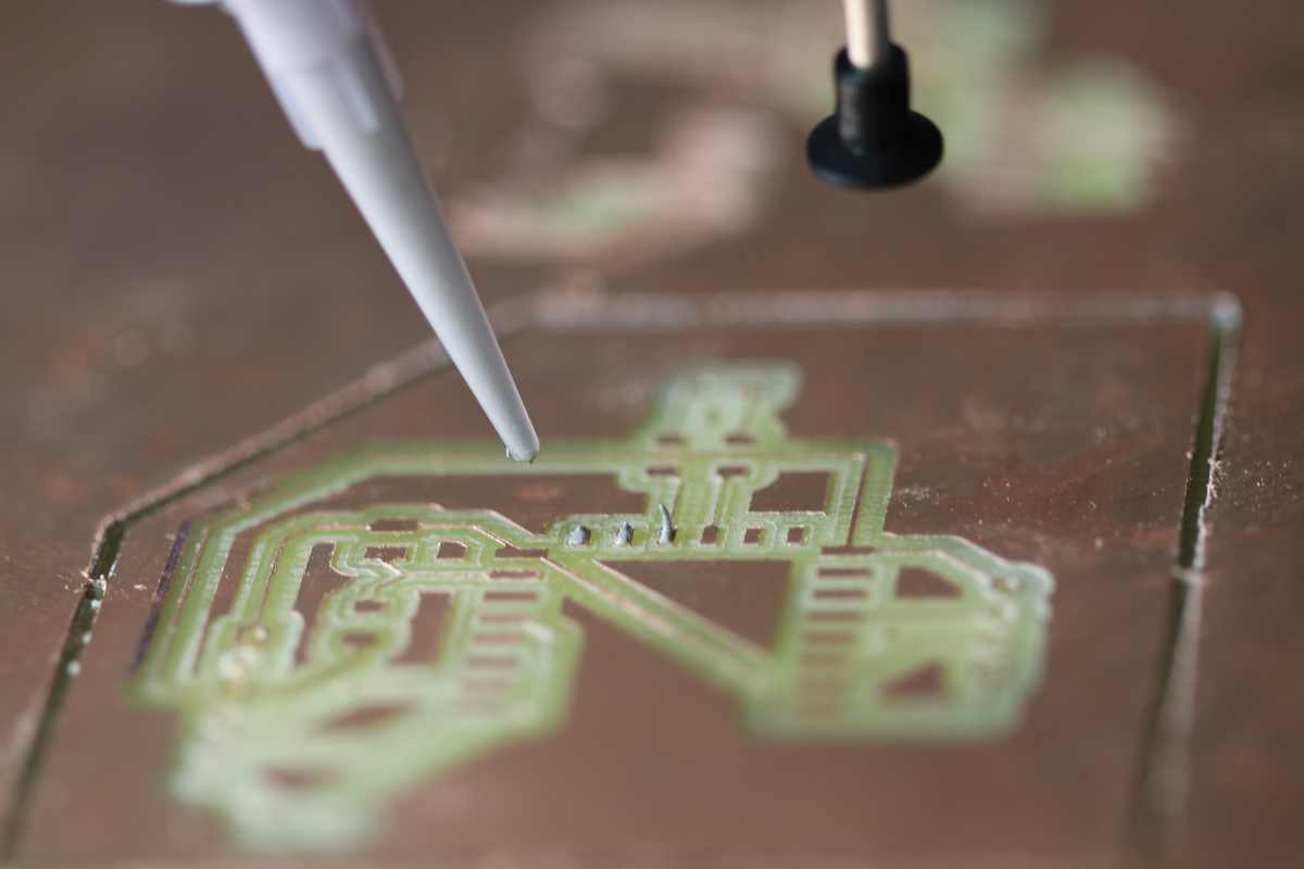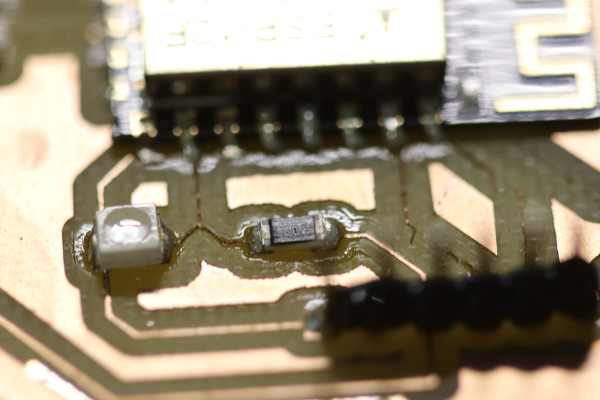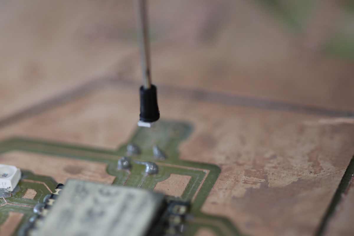 With probes, I check the connectivity of the components to the footprints and to the end of the tracks, the soldering seems fine. But some tracks are missing from the milling process .