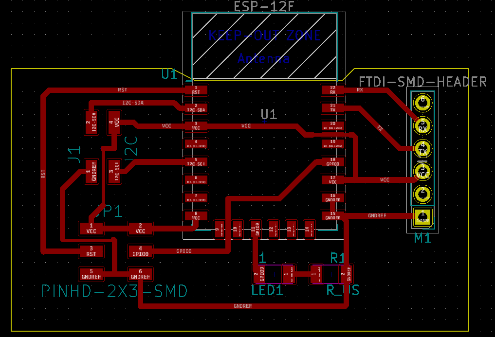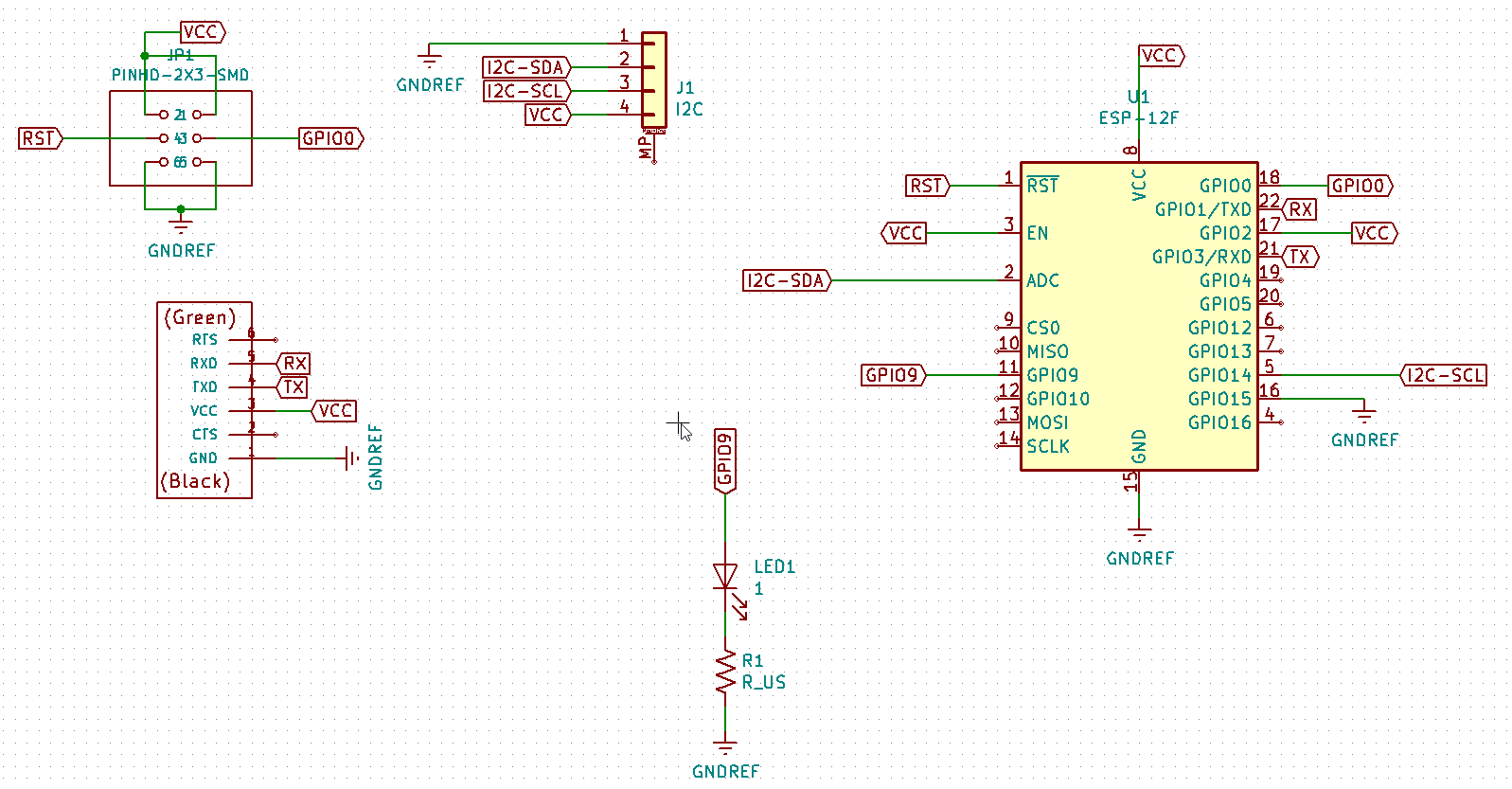 I’ve designed a board with an ESP8266 inspired by Neil’s board but with modification : I want to be able to flash during the bootloader but to have also the serial connections, to have access to the boot pin and to connect an I2C board.