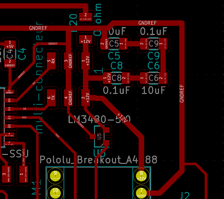 For the 12V elements I need to design wide tracks. I design them with 0.8mm. The stepper motor can consume up to 1 Amp.