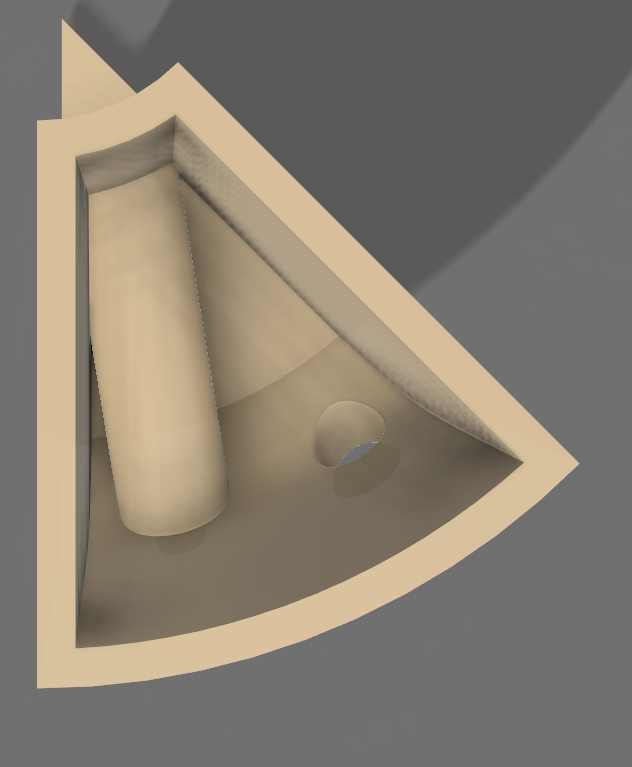 The prominent triangle is a guide to perfectly fit with the bottom part. As shown below on a reduced test version .