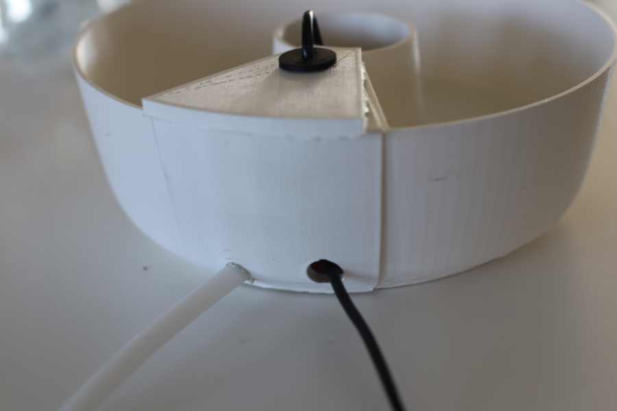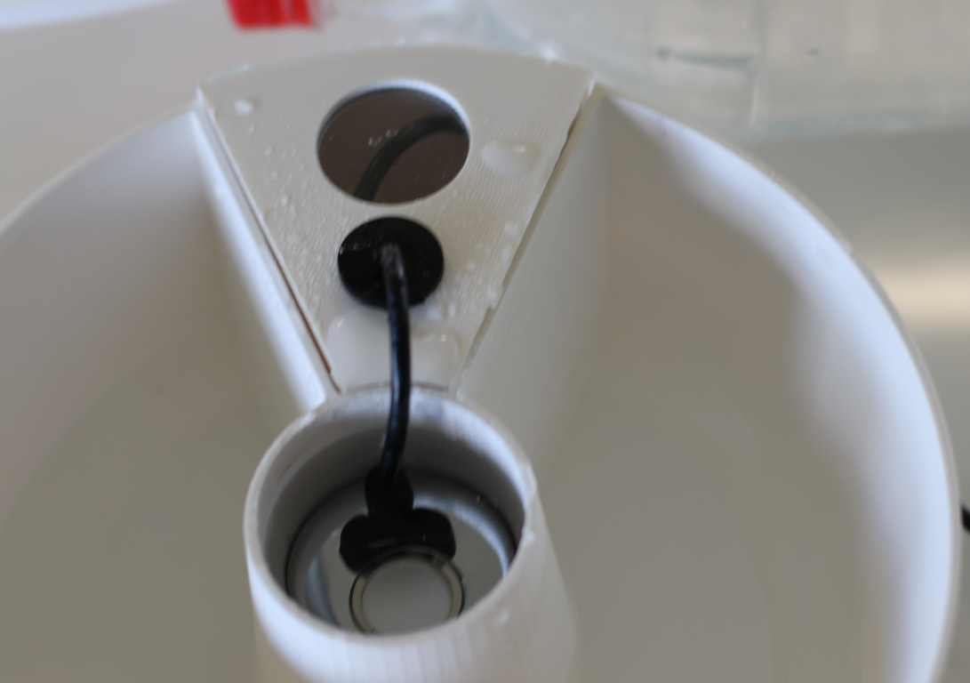 The water tube go through the lower part. Those parts are designed to avoid any possible contact with water and humidity ! Around the tube 3mm of 3D print seal the whole part to avoid any water leak.